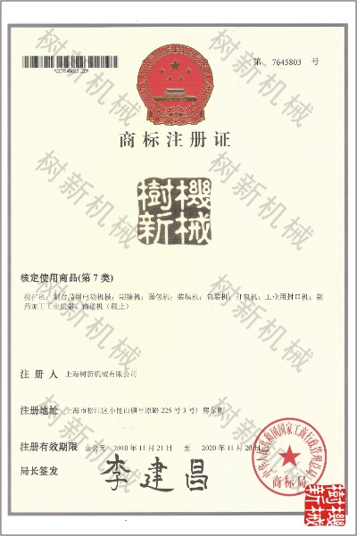 Key:树新机械资质文件,树新机械商标注册证,树新机械营业执照Qualifications documents of Shanghai SHUXIN Machinery Co.,Ltd, Shanghai SHUXIN Brand certificate, business license