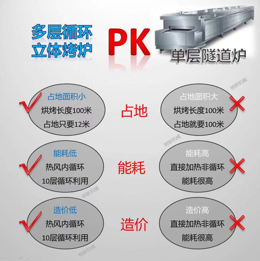 2.占地小:这套烘箱烤炉是我公司的结构设计,内部10层循环,大大减少了占地面积。例如100米的循环长度,占地才十多米。